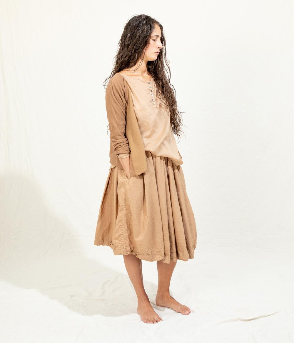 CAMICIA IN COTONE 100% cotoneTaglia Svestibilita’ morbidaSilhouette a trapeziolunghezza standard cm 60spalla scesaManiche a 3/4 | 62 cm dal centro dietroscollo a barchettabottoni in madreperla grigiamezza abbottonata