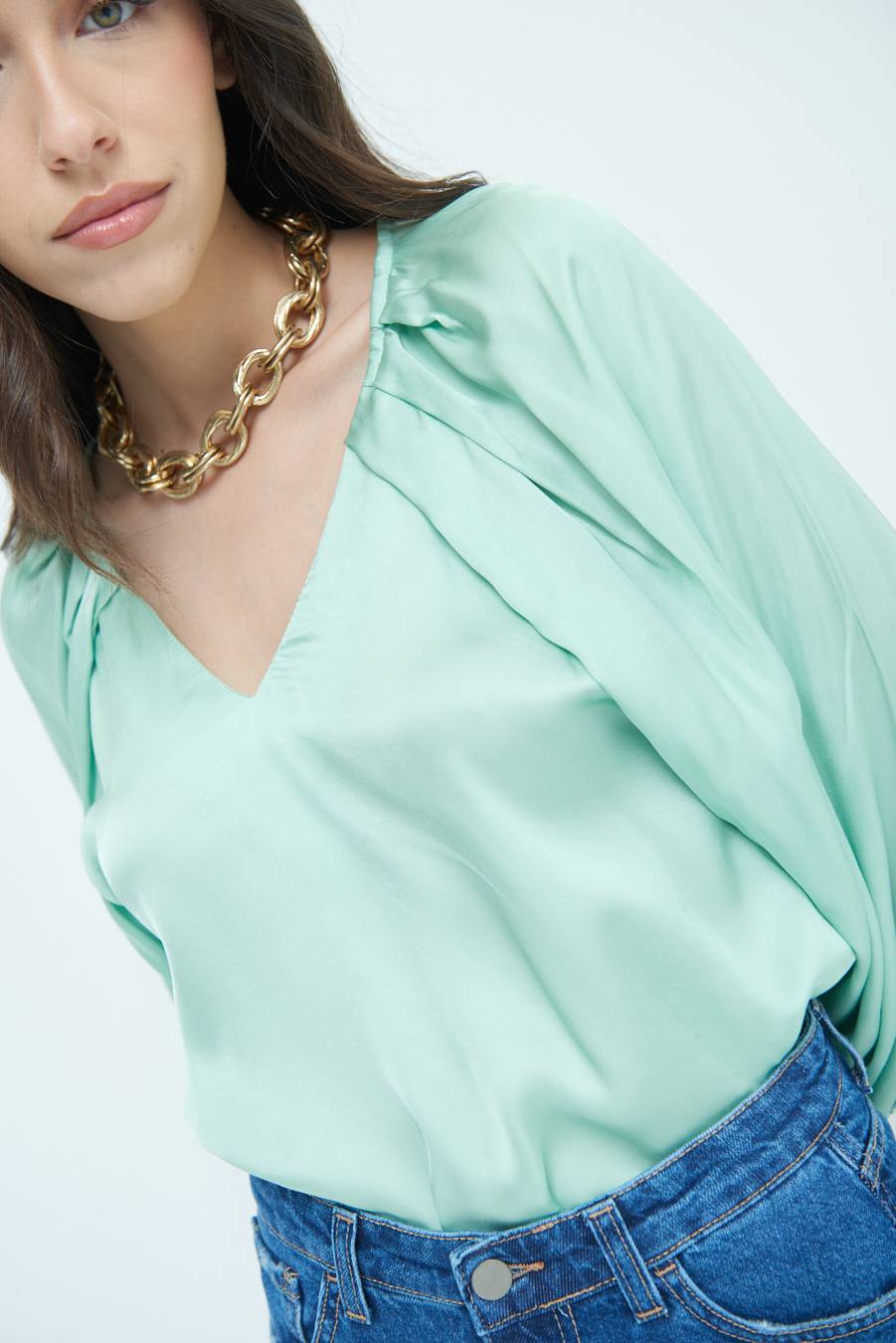 Kikisix CASACCA SCOLLO V RASO VISCOSA VERDE