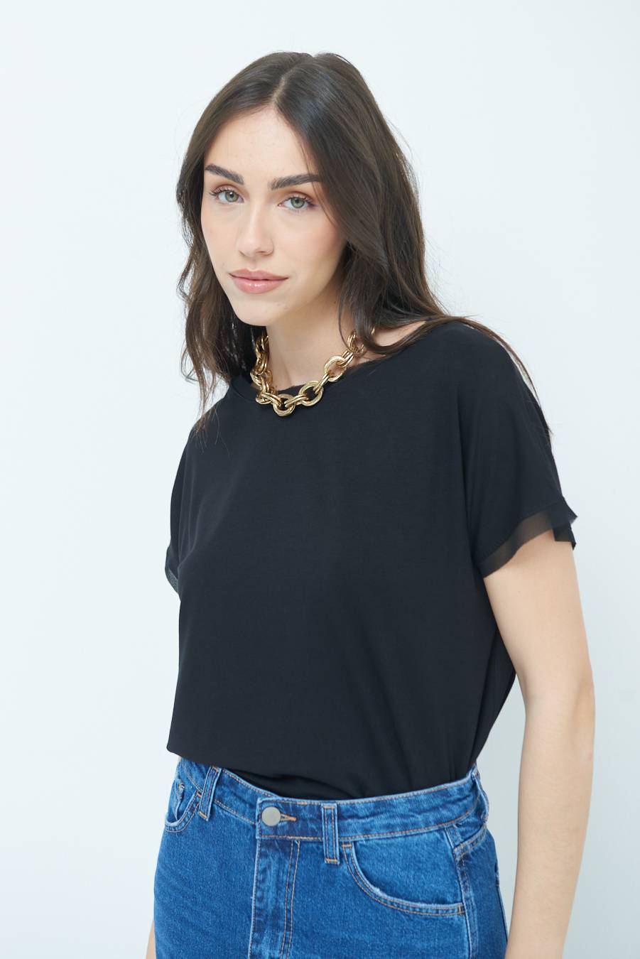 Kikisix MAGLIA PROFILO GEORGETTE NERO Saldi Di Fabbrica