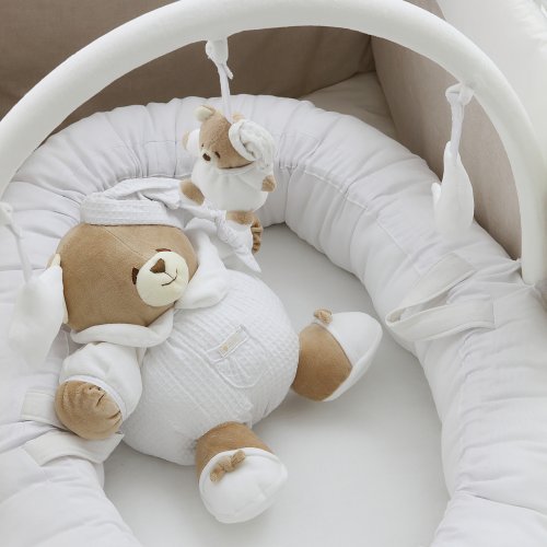 Il nuovo riduttore bianco di Tato è facilmente modellabile per aderire perfettamente al lettino del tuo dolce bebè. Grazia alla nuova innovazione, tramite cerniere, si uniscono i riduttori e formano una dolcissima culletta portaenfant. In dotazione anche l'archetto con peluches removibili che stuzzica la fantasia e stimola l'attività motoria!