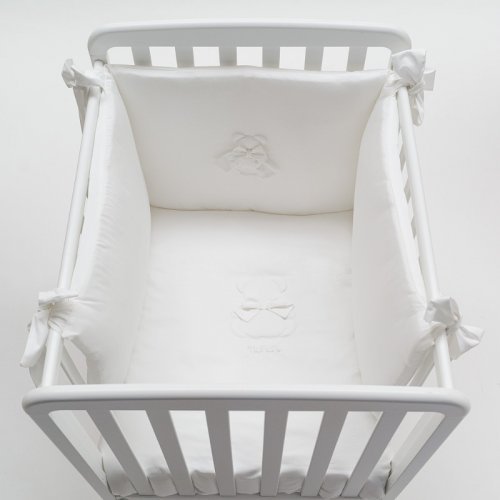 Il set piumone della culla dondolo è formato da: federa per cuscino, paracolpi imbottiti e sfoderabili, piumone e copripiumone sfoderabile e quindi facile al lavaggio. Il set è ideato e prodotto per la culletta a dondolo codice LE200.