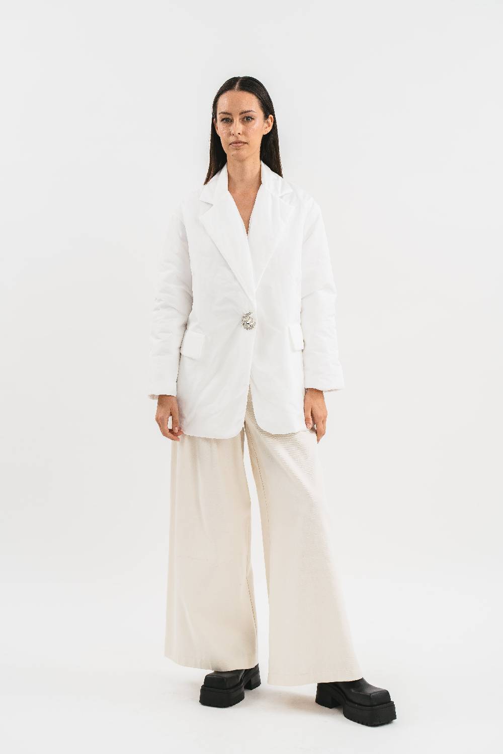 Giacca 100 grammi oversize con bottone gioiello e imbottitura con ovatta ricilcata