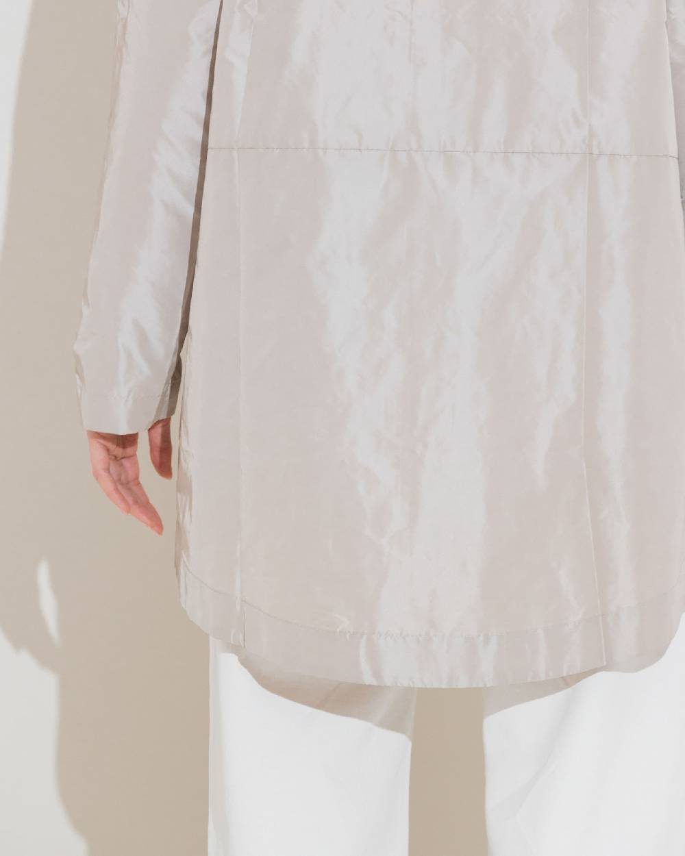 - giacca antivento lunga con cappuccio in tessuto tecnico leggero