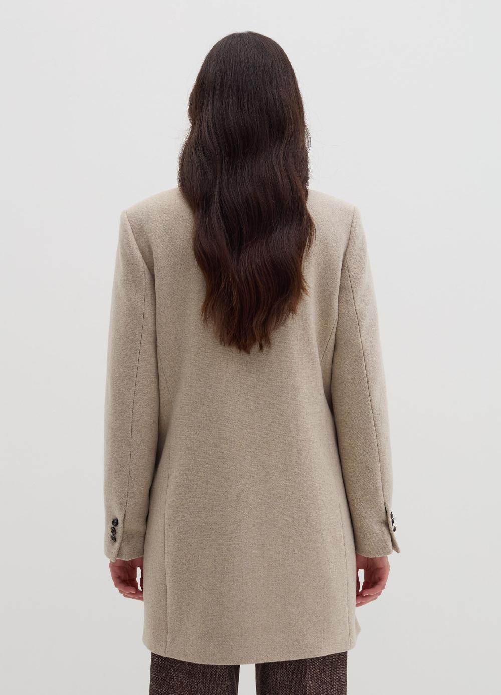 Cappotto realizzato in panno di misto lana e viscosa. Collo revers. Due tasche orizzontali con pattina. Chiusura doppiopetto con bottoni. N. Art.003563808Designed in Venice Made in MYANMAR