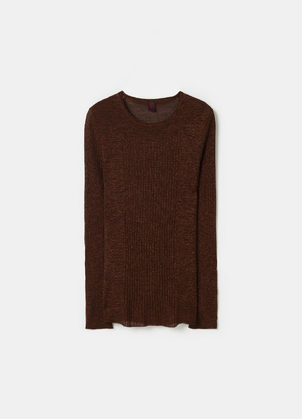 Maglia in misto viscosa effetto shantung a coste piatte. Scollo rotondo. Maniche lunghe. Vestibilita regolare. N. Art.003550063Designed in Venice Made in TUNISIA