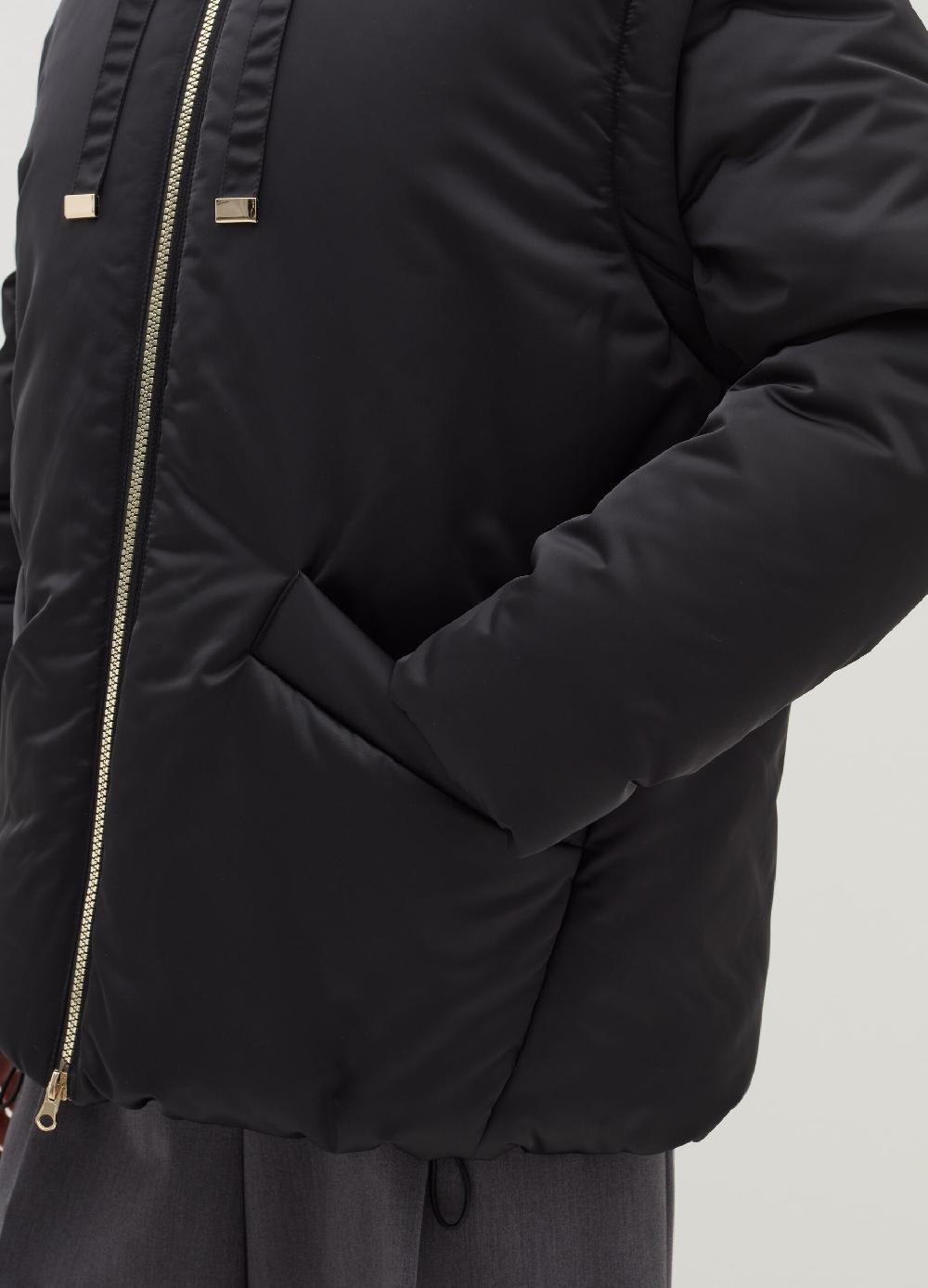 Piumino corto realizzato in tessuto tecnico effetto satin dotato di cappuccio e coulisse a fettuccia. Due tasche laterali a filo. Coulisse interna laterale al fondo. Maniche staccabili. Chiusura full-zip. N. Art.003563224Designed in Venice Made in CHINA