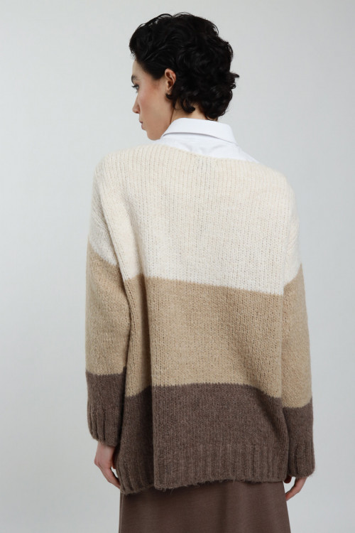 Maglione Scollo a Barca, a Righe Larghe, Oversize Con Spalla Scesa.